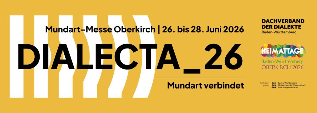 in Oberkirch zu präsentieren. Vereine und Institutionen, die sich mit Mundart und Dialekt auseinandersetzen, aber auch Künstlerinnen und Künstler, die sich mit mundartlichen Beiträgen vorstellen wollen, sind dazu eingeladen, am Programm der Messe teilzunehmen.Thema der Messe ist die Bedeutung, Bewahrung und Vielfalt der Dialekte, ihre Tradition und Zukunftsfähigkeit. Die DIALECTA_26 lädt Besucherinnen und Besucher ein, Verschiedenheit und gesellschaftliche Bedeutung von Mundart neu zu entdecken und aktiv mitzuerleben. Die landesweite und grenzüberschreitende Mundartmesse mit Schwerpunkt Mundart der Region versammelt Vereine und Institutionen aus Baden-Württemberg und dem Elsass, um gemeinsam mit dem Dachverband der Dialekte Baden-Württemberg und der Stadt Oberkirch für den Erhalt und die Förderung der Dialekte als lebendigem Teil der Kultur zu werben.